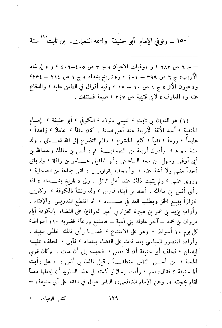 وتوفي الإمام أبو حنيفة واسمه النعمان بن ثابت سنة