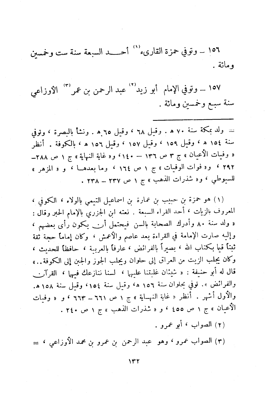 وتوفي الإمام أبو زيد عبد الرحمن بن عمر الأوزاعي سنة سبع وخمسين ومائة.
