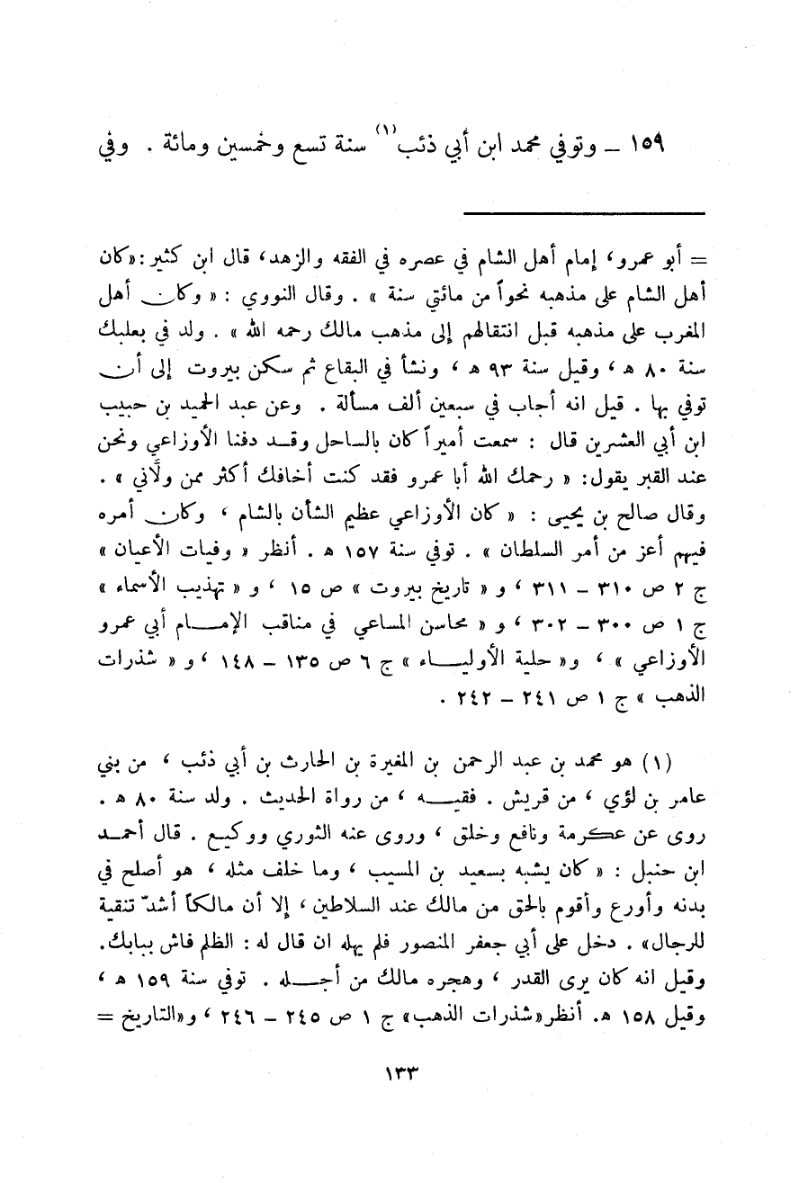 وتوفي محمد ابن أبي ذئب سنة تسع وخمسين ومائة. وفي