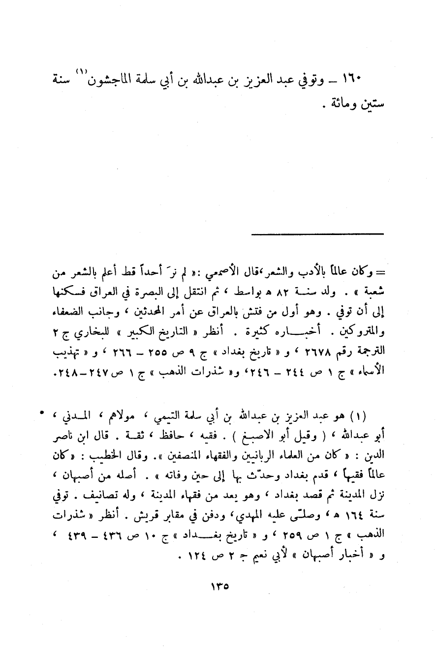 وتوفي عبد العزيز بن عبد الله بن أبي سلمة الماجشون سنة ستين ومائة.