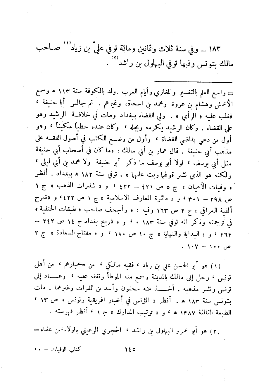 وفي سنة ثلاث وثمانين ومائة توفي علي بن زياد صاحب مالك بتونس وفيها توفي البهلول بن راشد.