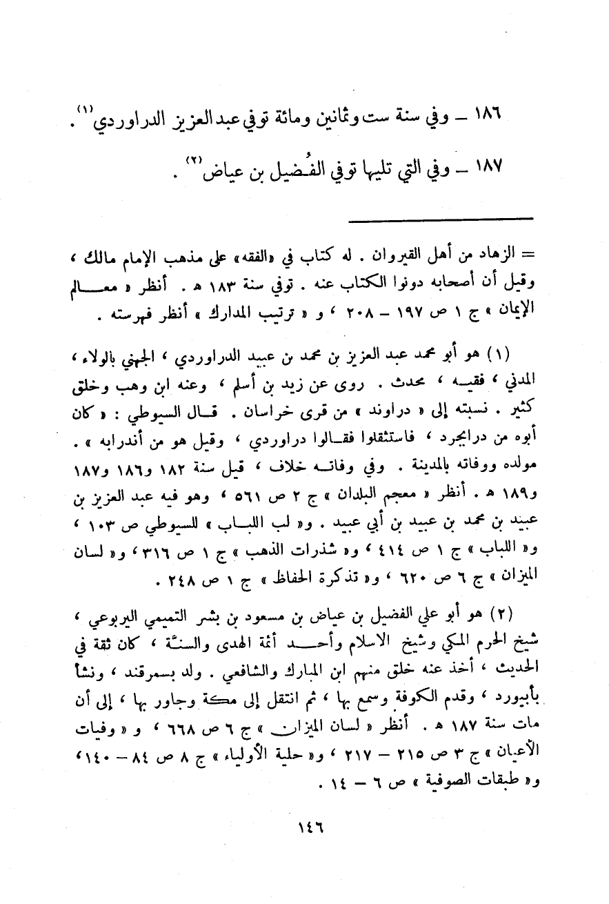 وفي سنة ست وثمانين ومائة توفي عبد العزيز الدراوردي.