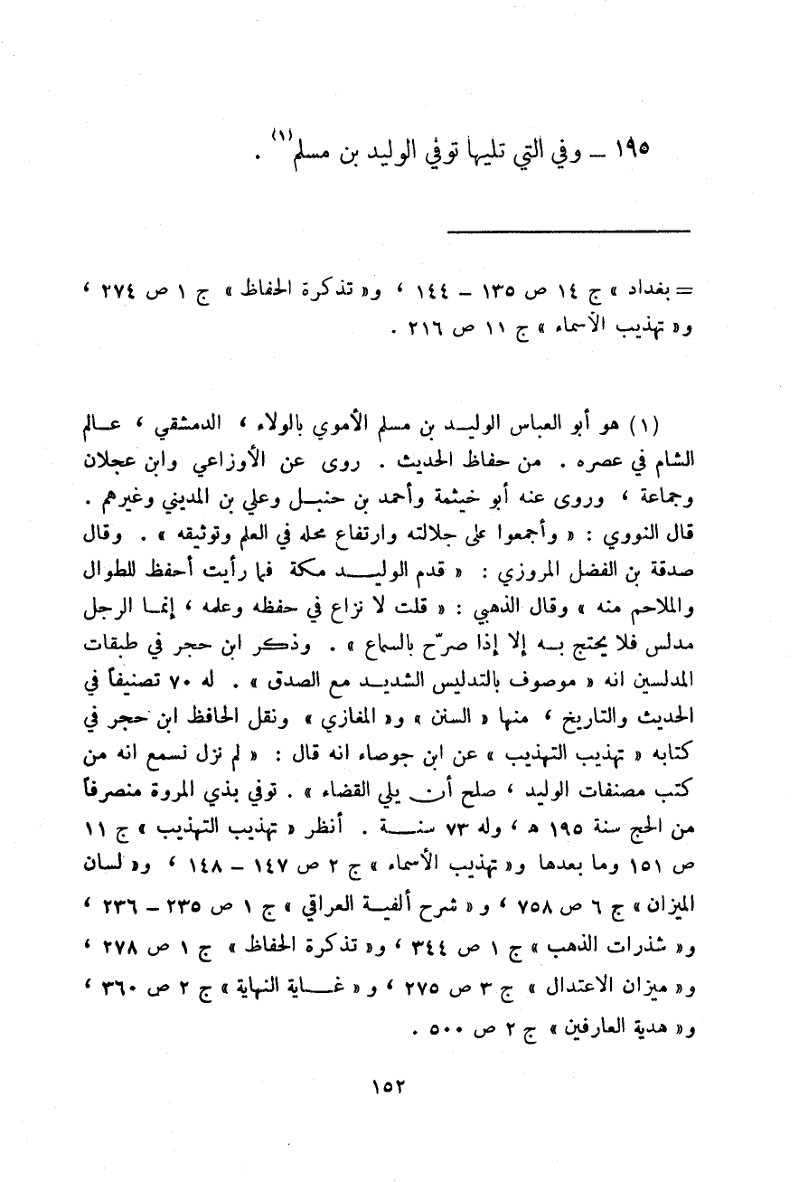 وفي التي تليها توفي الوليد بن مسلم.