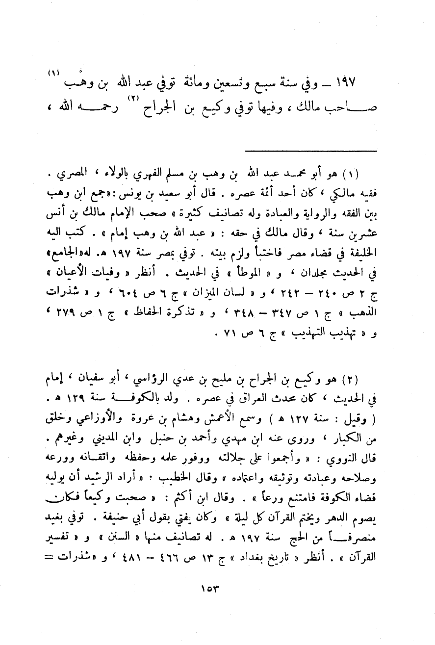 وفي سنة سبع وتسعين ومائة توفي عبد الله بن وهب صاحب مالك، وفيها توفي وكيع بن الجراح رحمه الله،