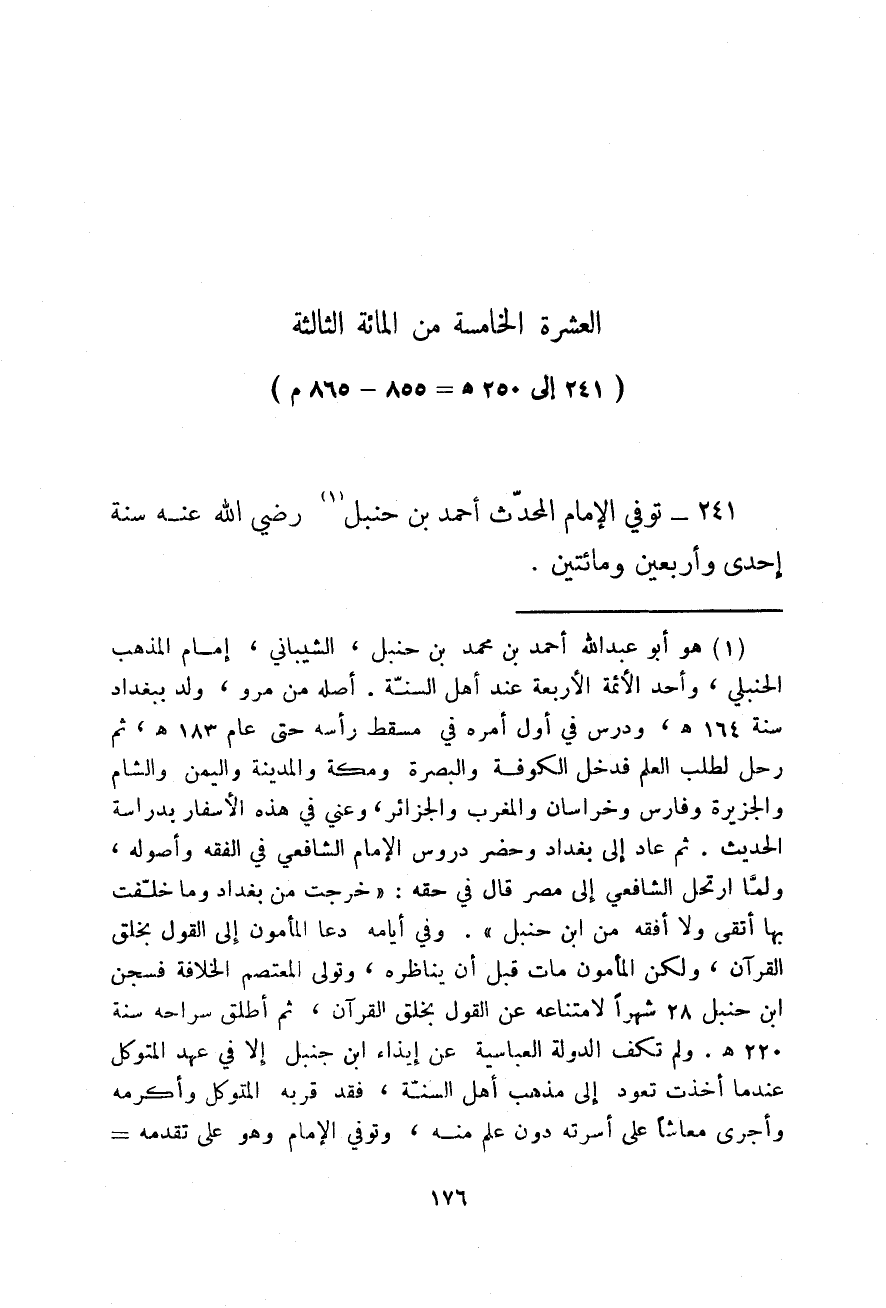 241 - إلى 250هـ، 855 - 865م توفي الإمام المحدث أحمد بن حنبل رضي الله عنه سنة إحدى وأربعين ومائتني.