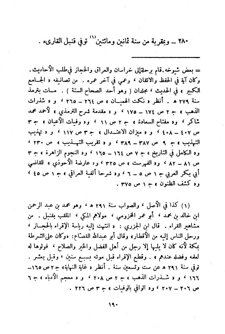 وبمقربة من سنة ثمانين ومائتين توفي قنبل القارئ.