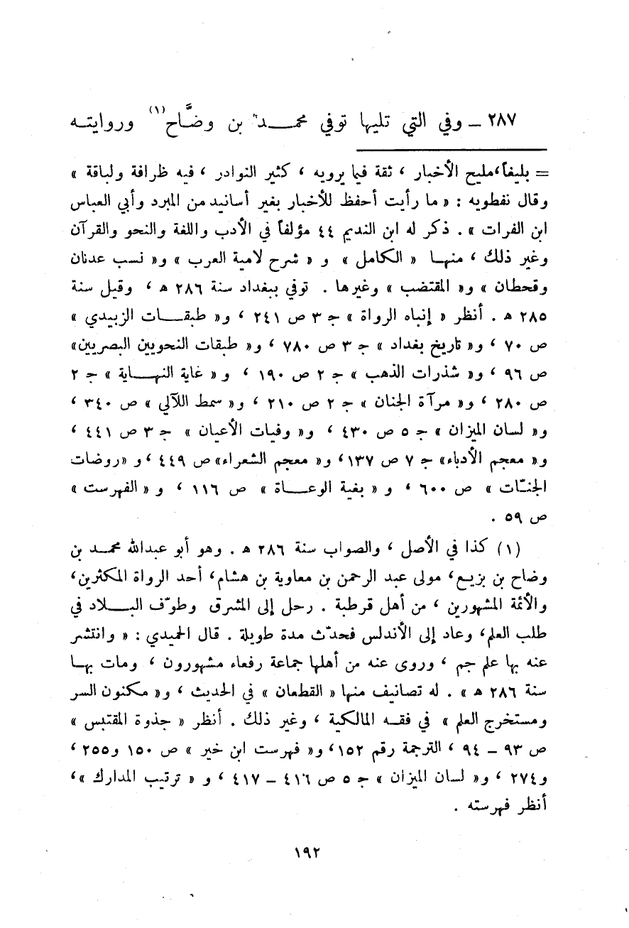 وفي التي تليها توفي محمد بن وضاح وروايته
