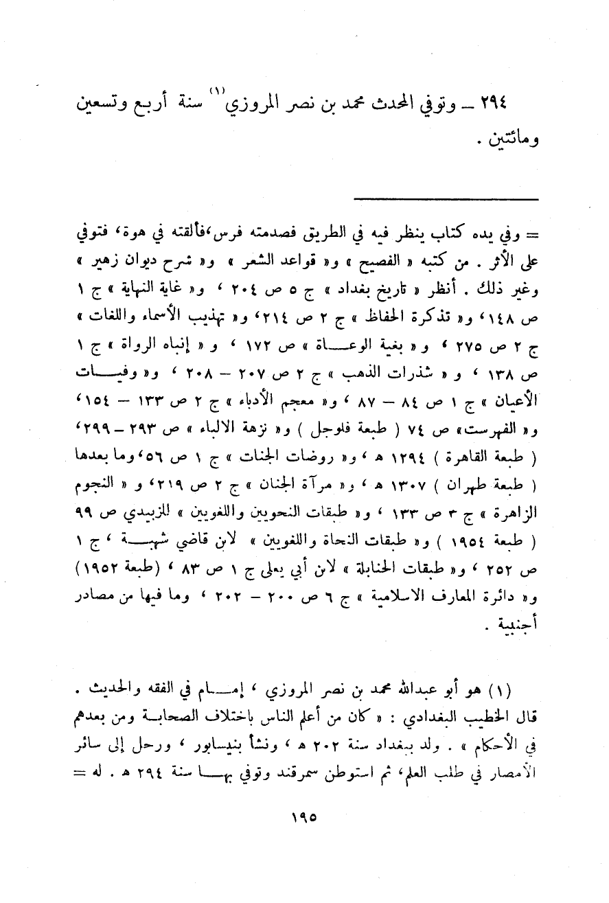 وتوفي المحدث محمد بن نصر المروزي سنة أربع وتسعين ومائتين.