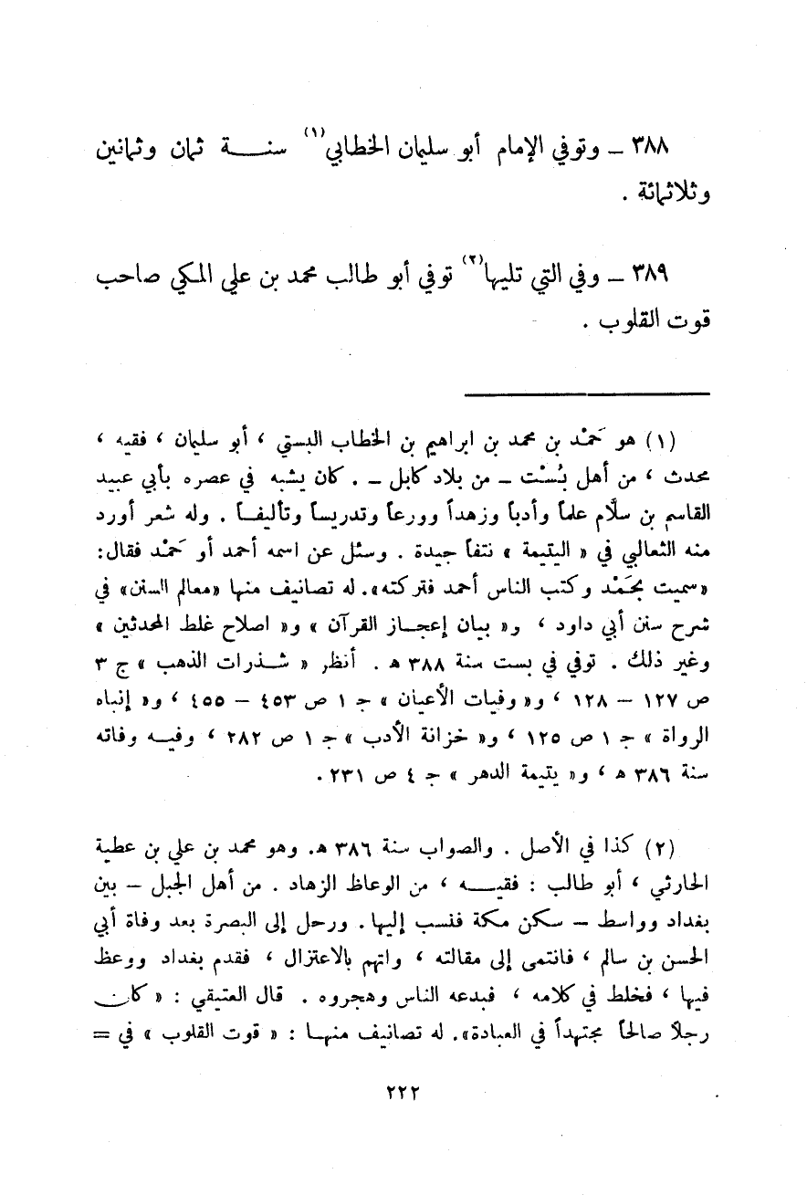وتوفي الإمام أبو سليمان الخطابي سنة ثمان وثمانين وثلاثمائة.
