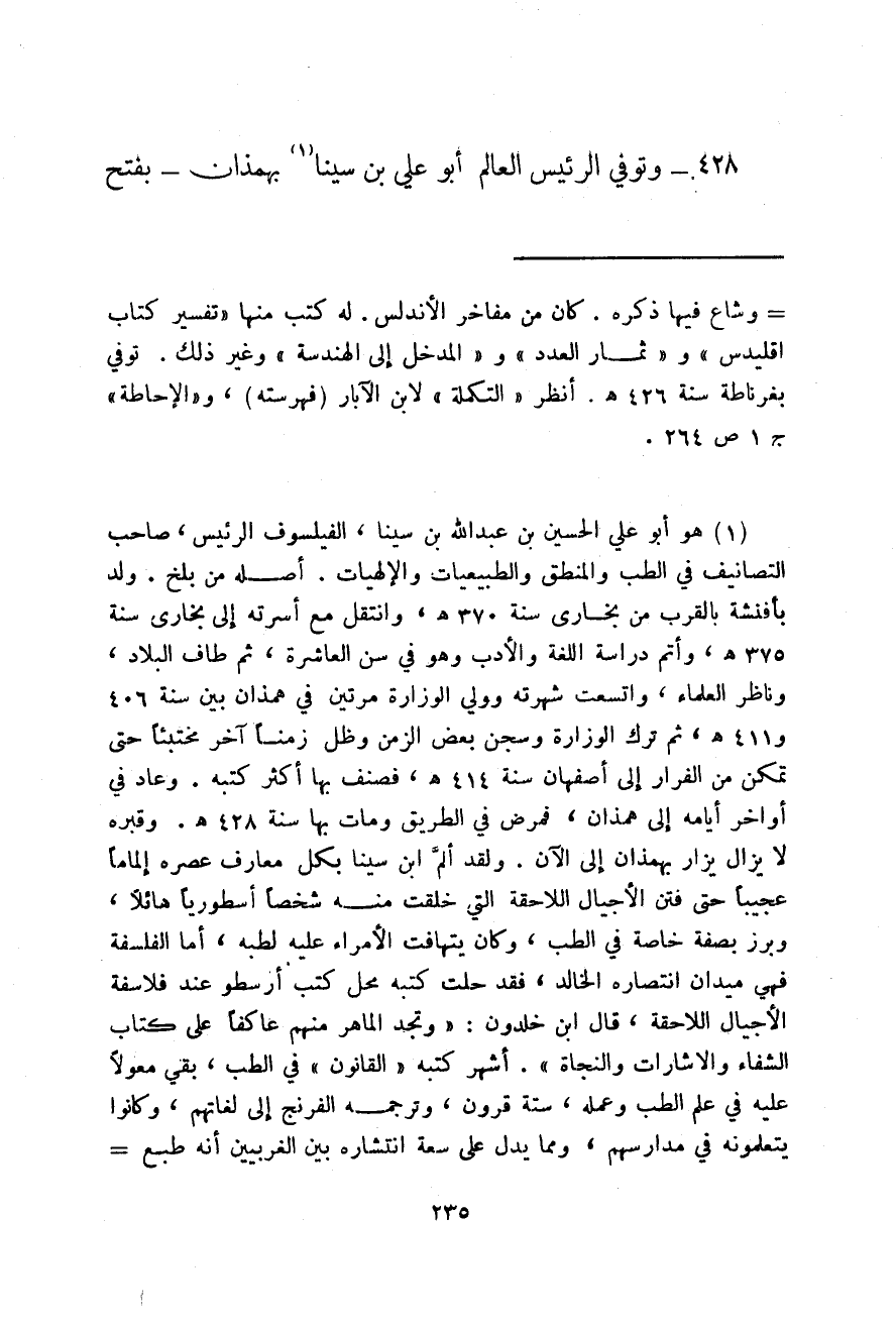 وتوفي الرئيس العالم أبو علي بن سينا بهمذان بفتح