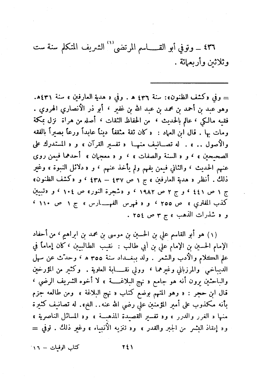 وتوفي أبو القاسم المرتضى الشريف المتكلم سنة ست وثلاثين وأربعمائة.