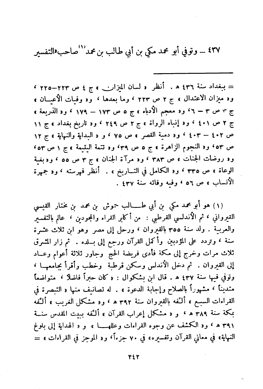 وتوفي أبو محمد مكي بن أبي طالب بن محمد صاحب التفسير