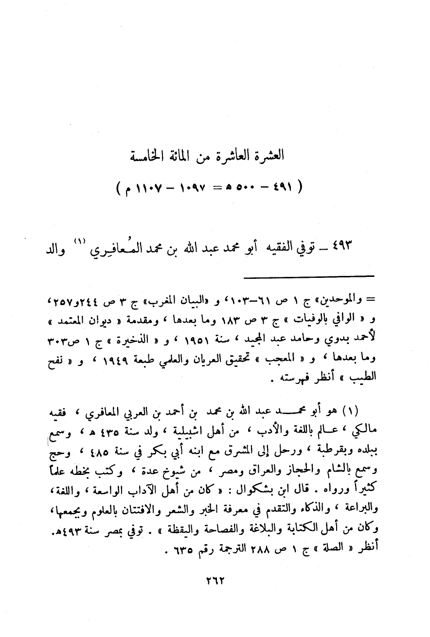 491 - 500هـ، 1097 - 1107م توفي الفقيه أبو محمد عبد الله بن محمد المعافري والد