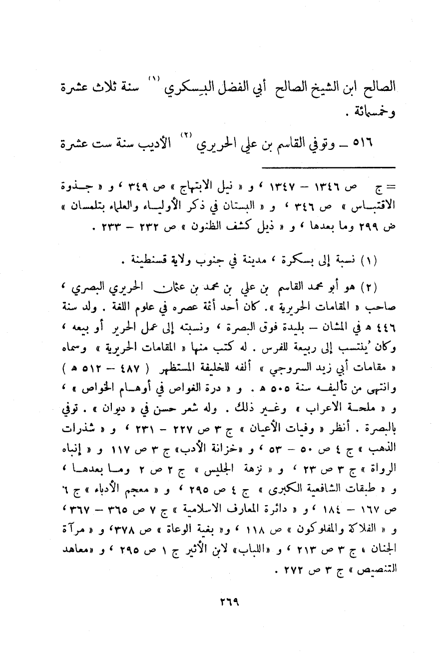 وتوفي القاسم بن علي الحريري الأديب سنة ست عشرة