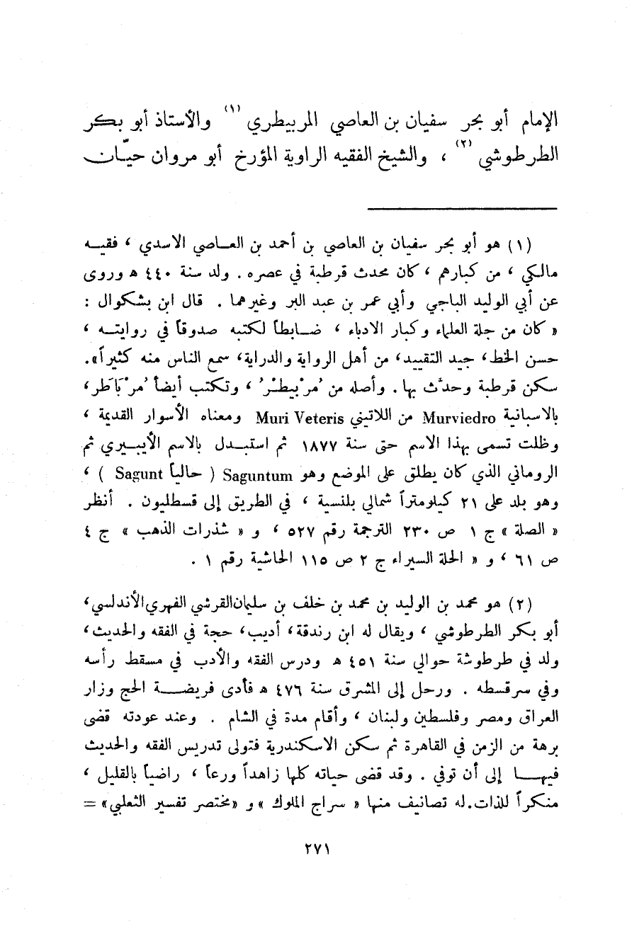 الإمام أبو بحر سفيان بن العاصي المربيطري والأستاذ أبو بكر الطرطوشي، والشيخ الفقيه الراوية المؤرخ أبو مروان حيان