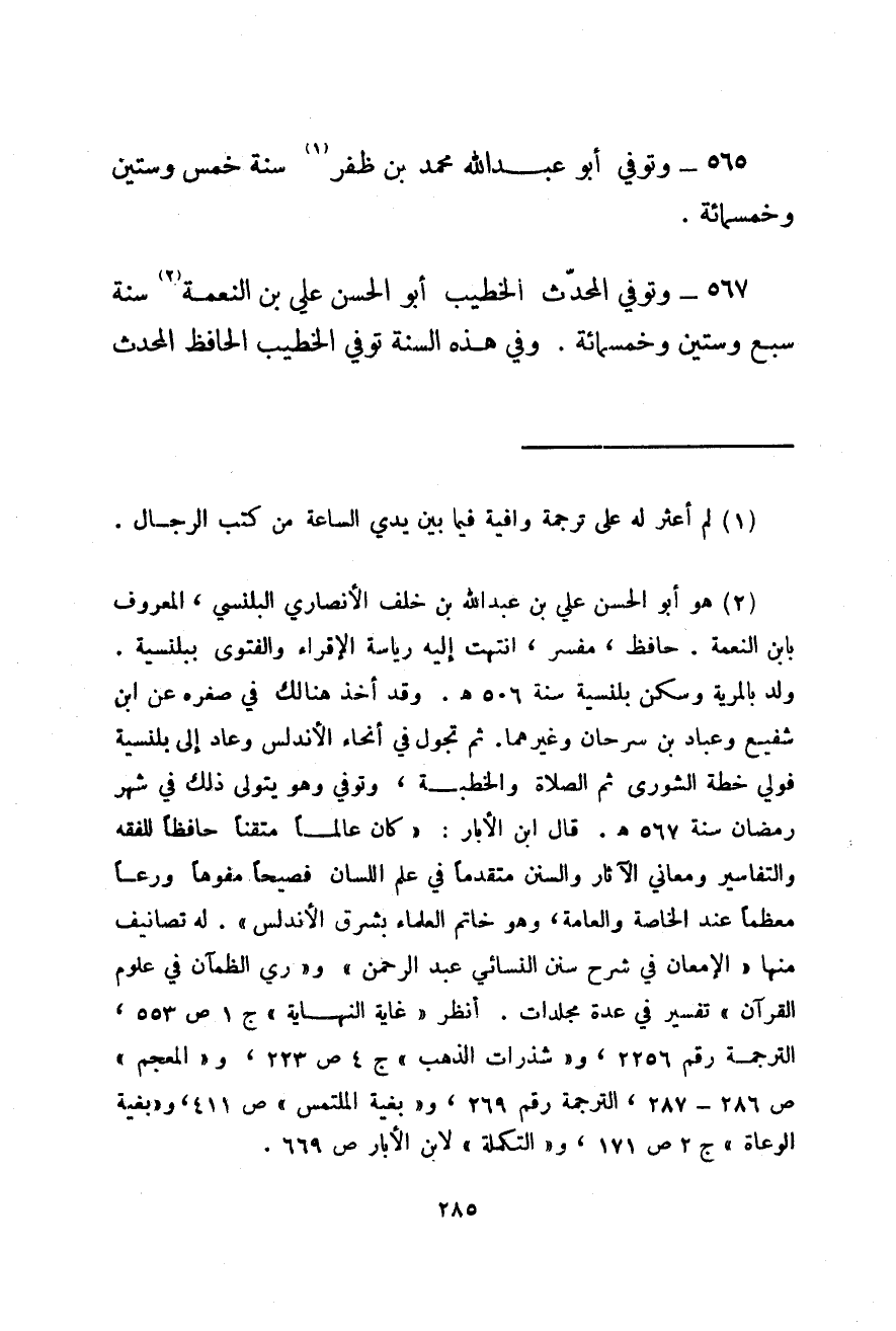 وتوفي أبو عبد الله محمد بن ظفر سنة خمس وستين وخمسمائة.