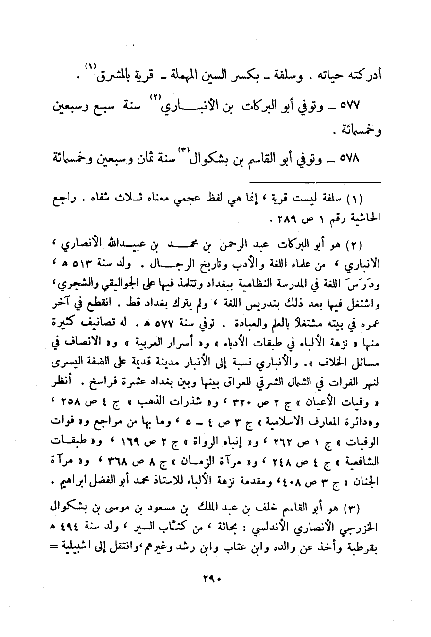 وتوفي أبو البركات بن الأنباري سنة سبع وسبعين وخمسمائة.