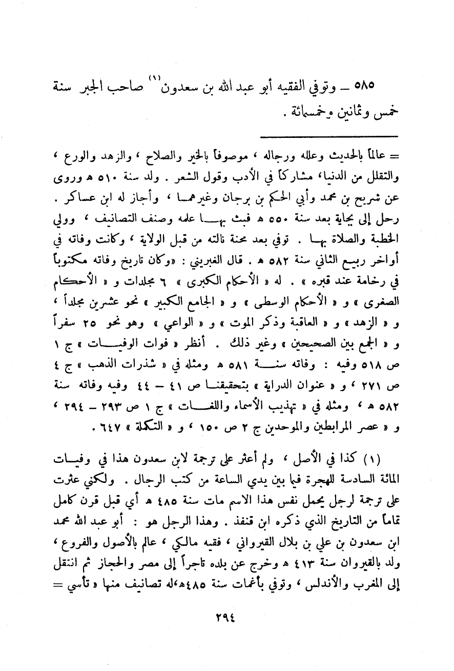 وتوفي الفقيه أبو عبد الله بن سعدون صاحب الجبر سنة خمس وثمانين وخمسمائة.