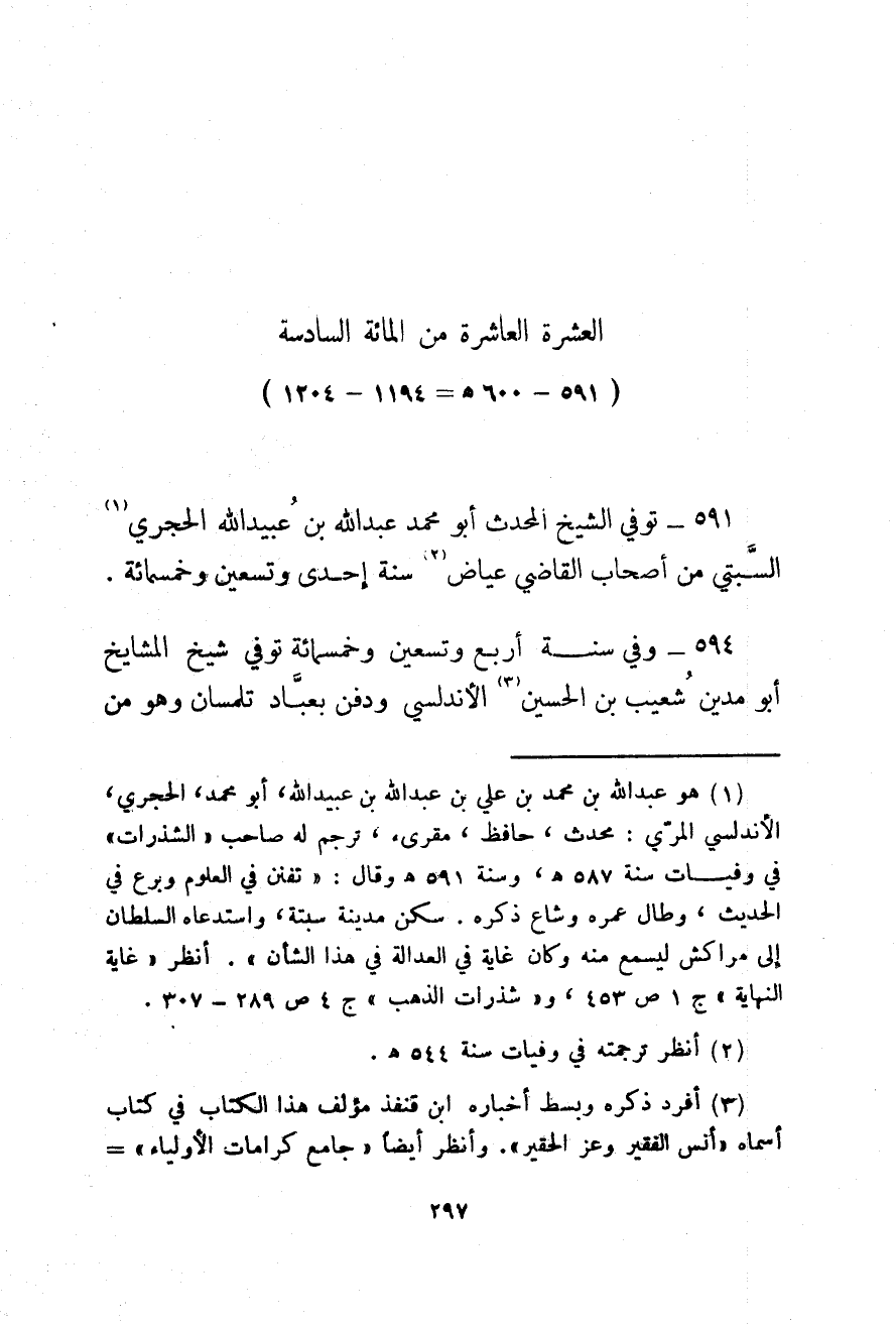 591 - 600هـ، 1194 - 1204م توفي الشيخ المحدث أبو محمد عبد الله بن عبيد الله الحجري السبتي من أصحاب القاضي عياض سنة إحدى وتسعين وخمسمائة.