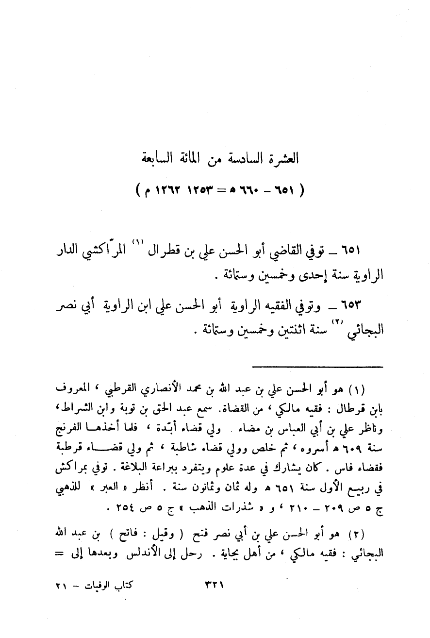 651 - 660هـ، 1253 - 1262م توفي القاضي أبو الحسن علي بن قطرال المراكشي الدار الراوية سنة إحدى وخمسين وستمائة.