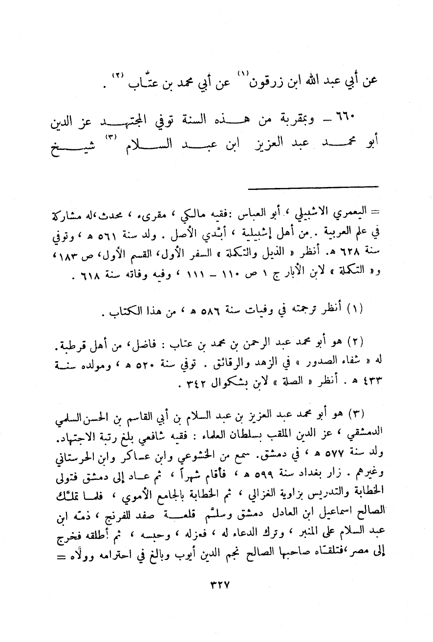 وبمقربة من هذه السنة توفي المجتهد عز الدين أبو محمد عبد العزيز ابن عبد السلام شيخ