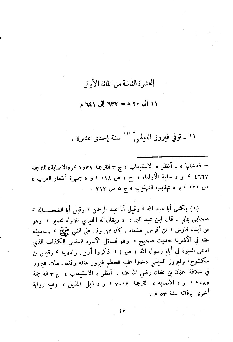 11 - إلى 20هـ، 632 إلى 641م توفي فيروز الديلمي سنة إحدى عشرة.