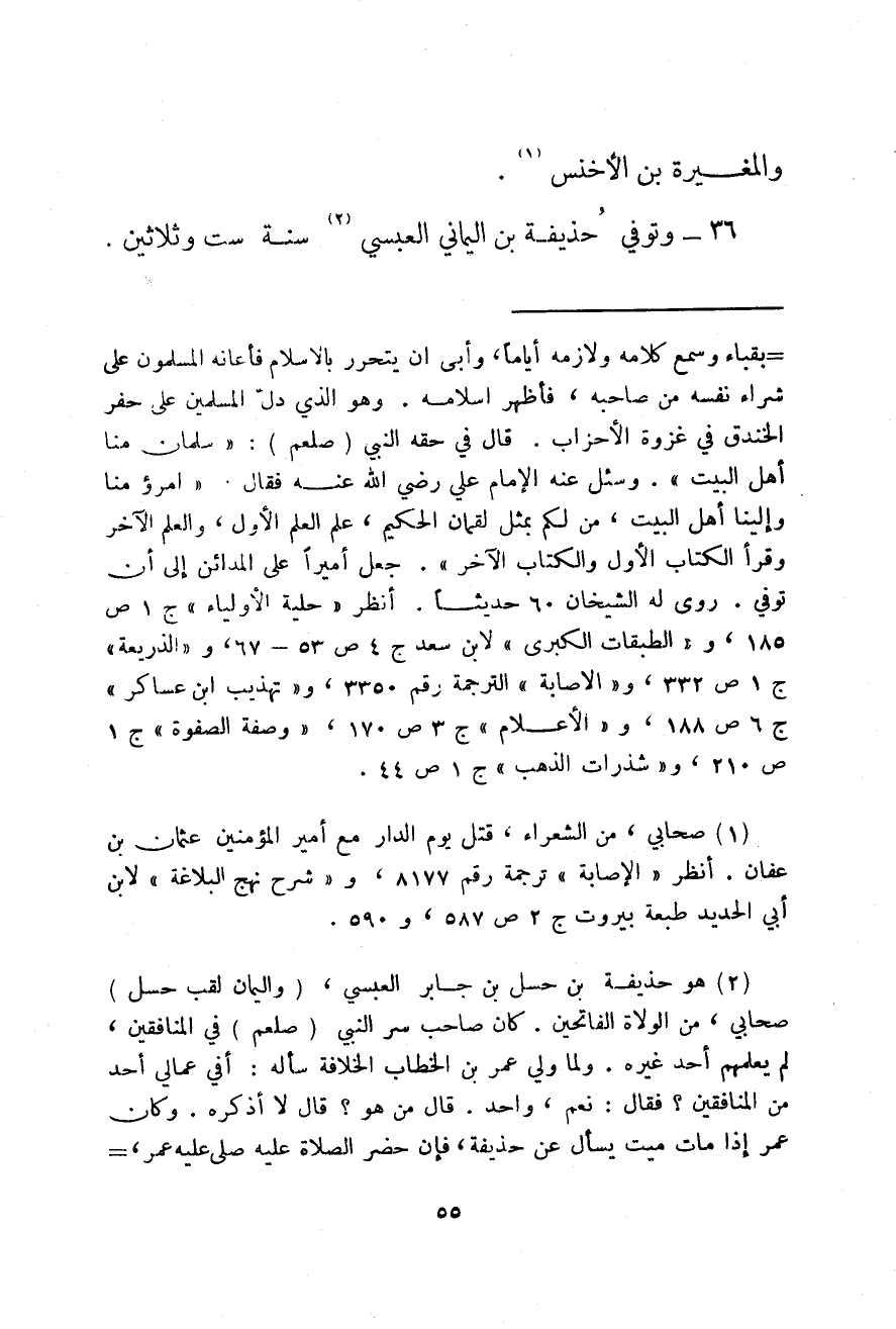وتوفي حذيفة بن اليماني العبسي سنة ست وثلاثين.
