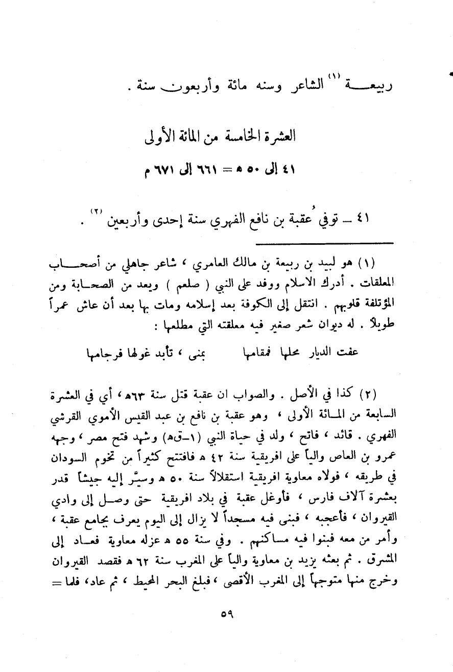 41 - إلى 50هـ، 661 إلى 671م توفي عقبة بن نافع الفهري سنة إحدى وأربعين.