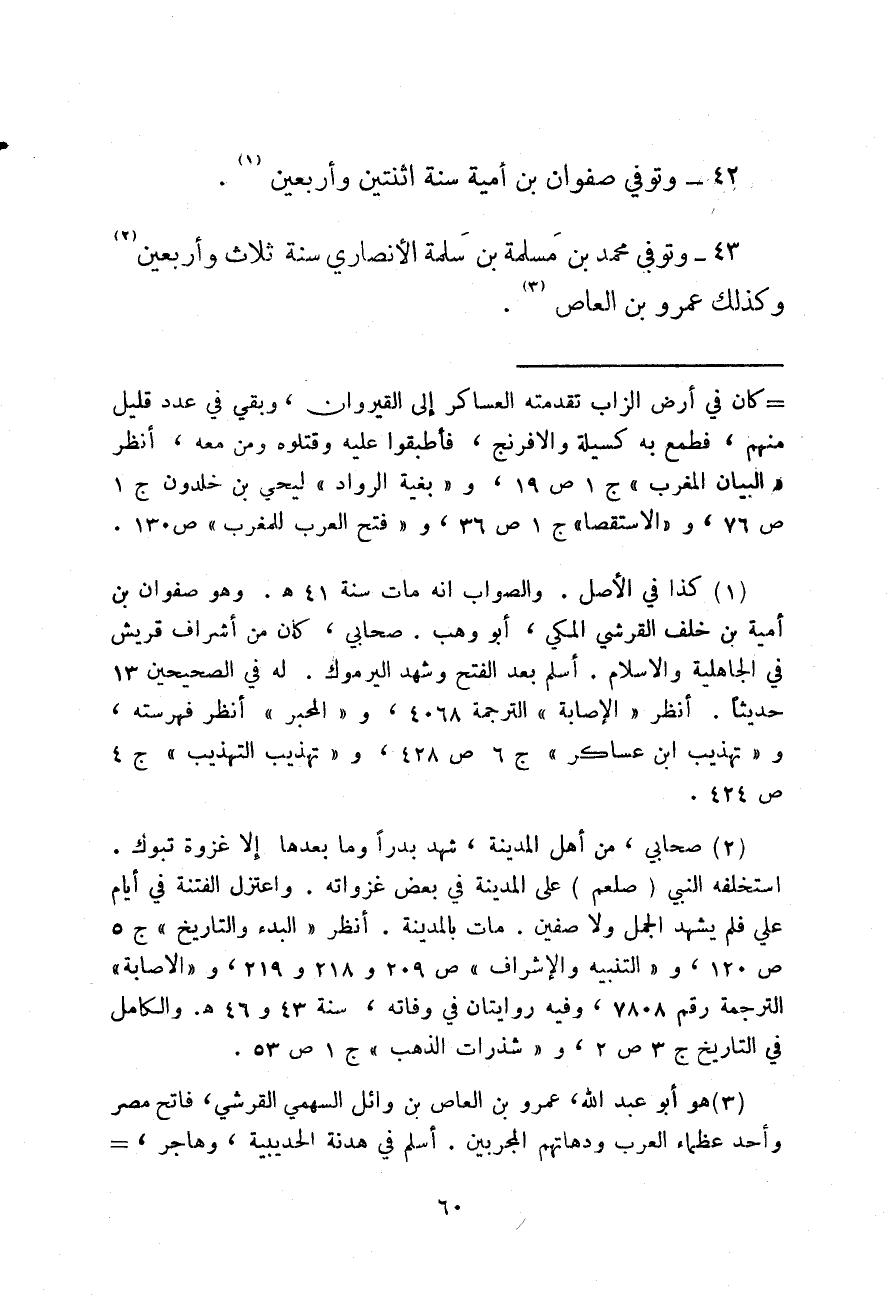 وتوفي محمد بن مسلمة بن سلمة الأنصاري سنة ثلاث وأربعين وكذلك عمرو بن العاص.