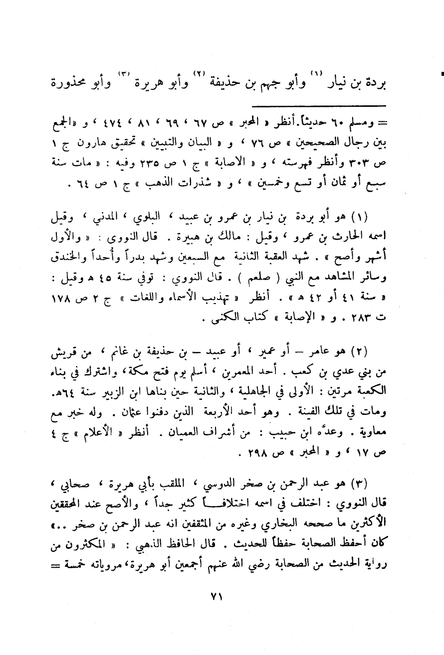 بردة بن نيار وأبو جهم بن حذيفة وأبو هريرة وأبو محذورة