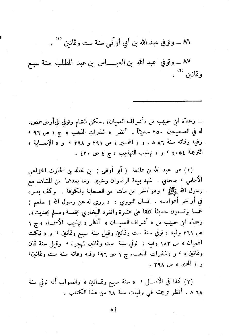وتوفي عبد الله بن أبي أوفى سنة ست وثمانين.