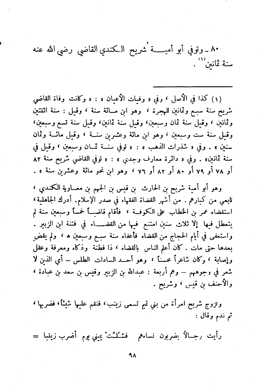 وتوفي أبو أمية شريح الكندي القاضي رضي الله عنه سنة ثمانين.