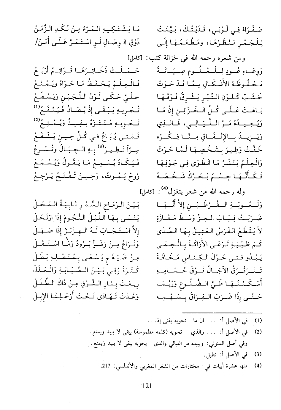 (¬4) منها عشرة أبيات في: مختارات من الشعر المغربي والأندلسي: 217.