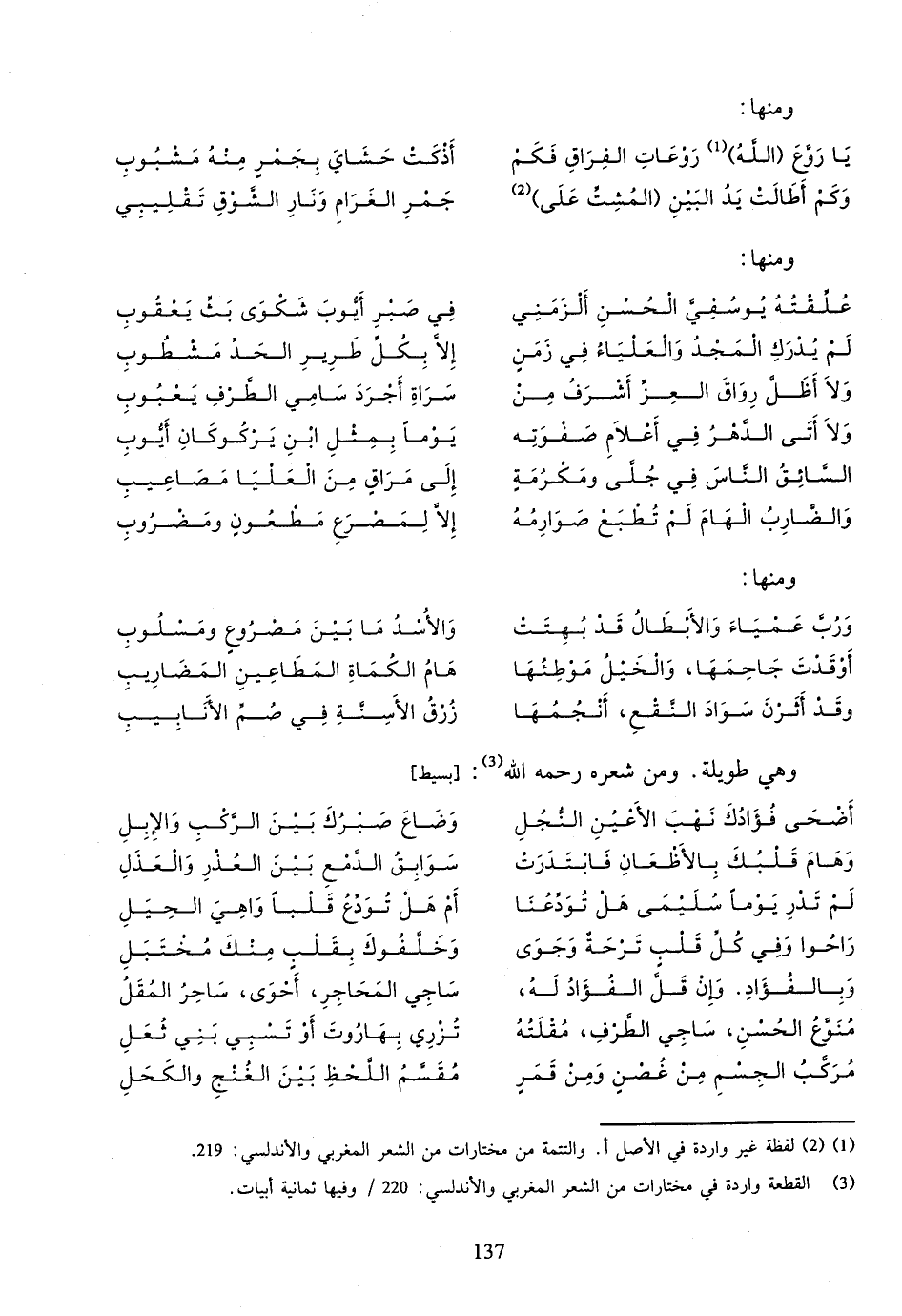 (¬3) القطعة واردة في مختارات من الشعر المغربي والأندلسي: / 220 وفيها ثمانية أبيات.