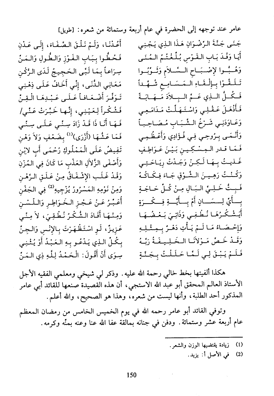 (¬1) زيادة يقتضيها الوزن والشعر.