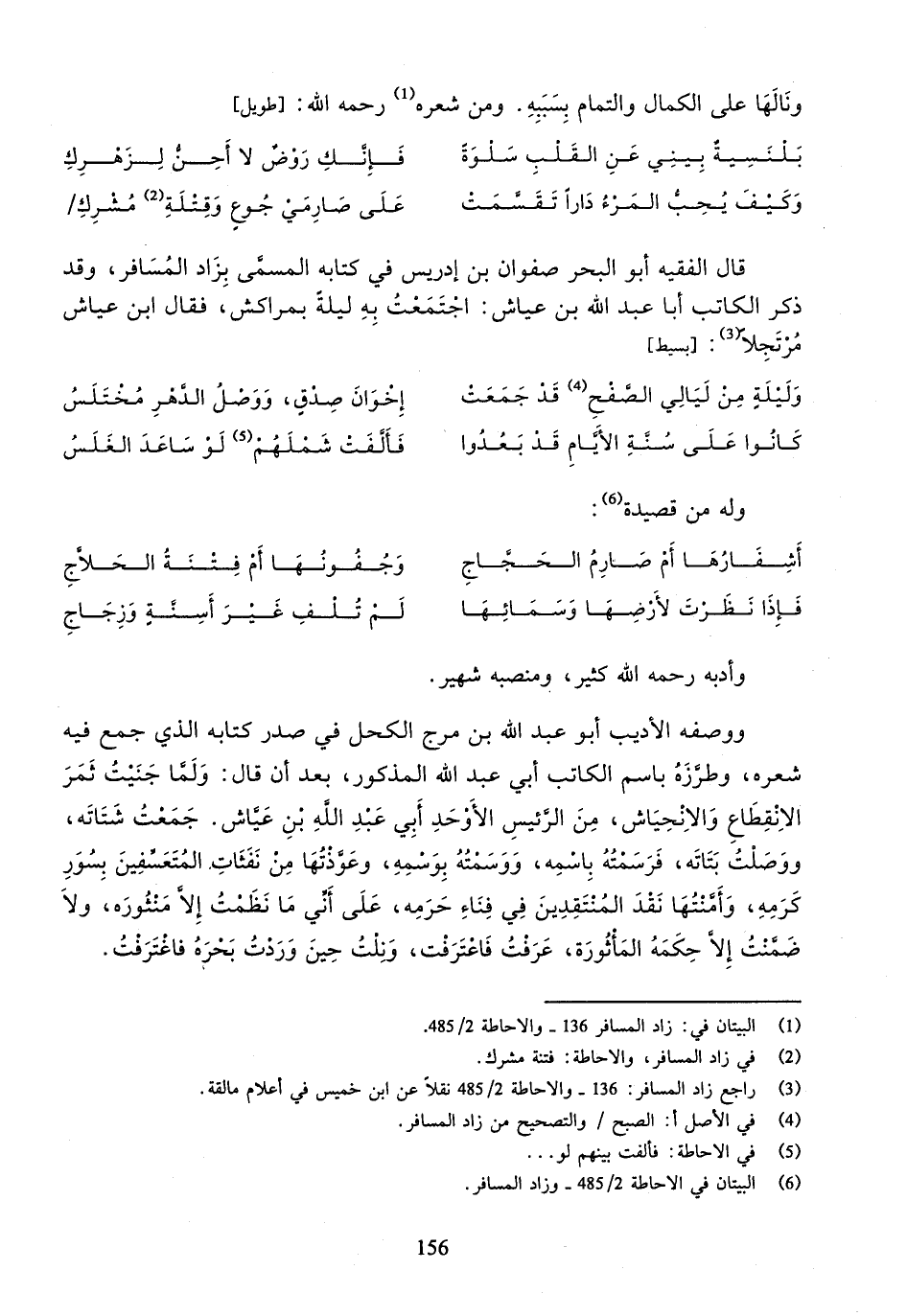 قال الفقيه أبو البحر صفوان بن إدريس في كتابه المسمّى بزاد المسافر، وقد ذكر الكاتب أبا عبد الله بن عياش: اجتمعت به ليلة بمراكش، فقال ابن عياش مرتجلا (¬3): [بسيط]