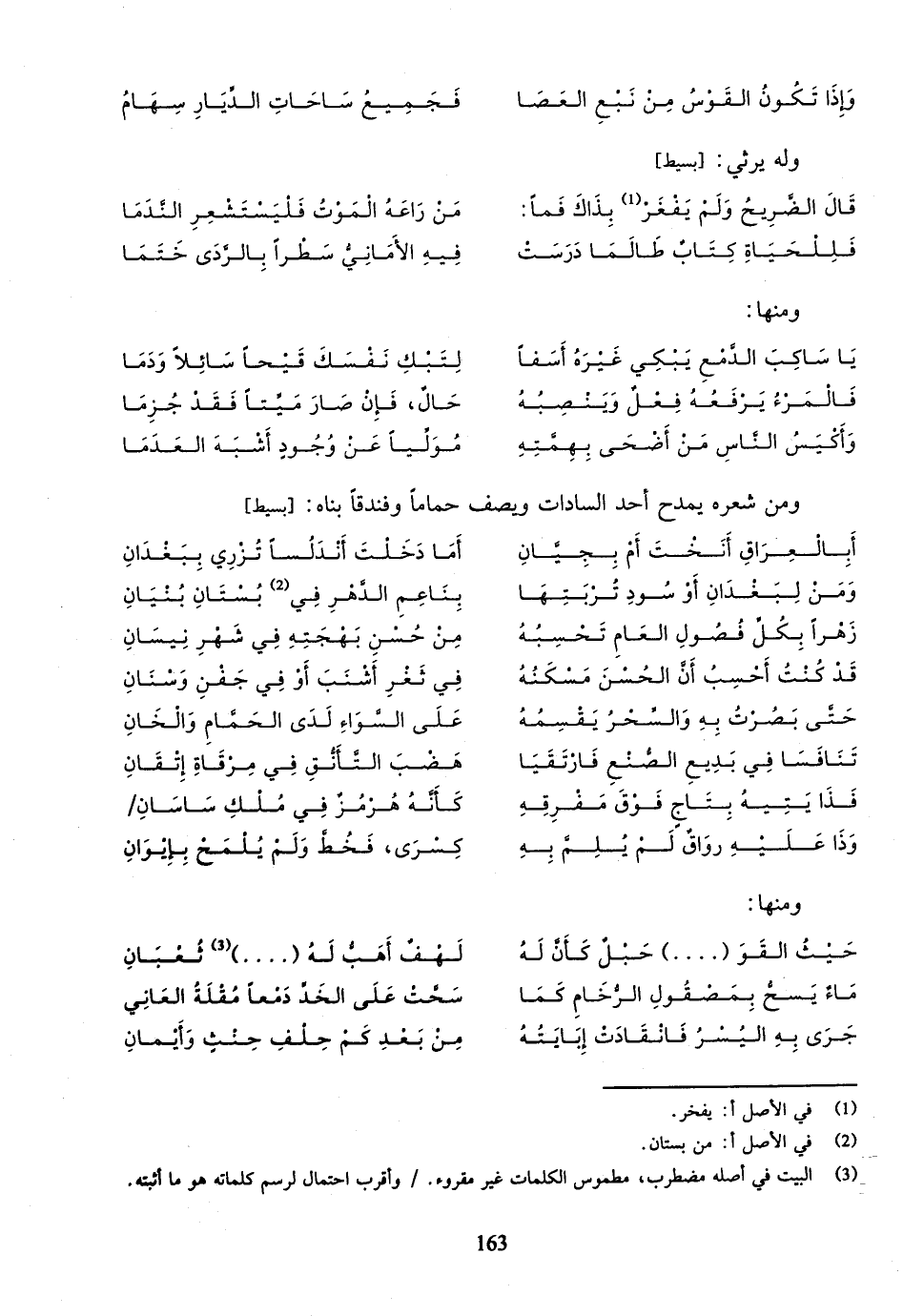 ومن شعره يمدح أحد السادات ويصف حماما وفندقا بناه: [بسيط]