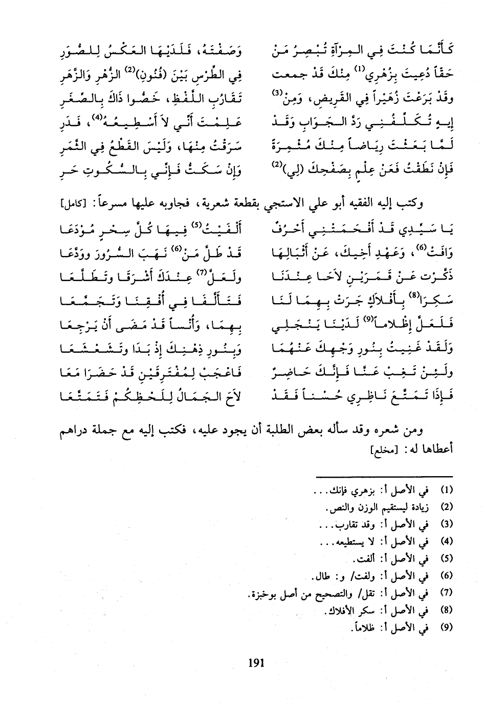 وكتب إليه الفقيه أبو علي الاستجي بقطعة شعرية، فجاوبه عليها مسرعا: [كامل]