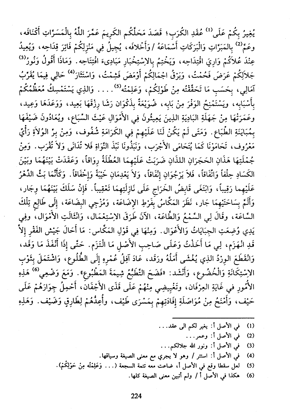 (¬5) لعل سقطا وقع في الأصل أ، ضاعت معه تتمة السجعة (... وعلمته من حولكم).