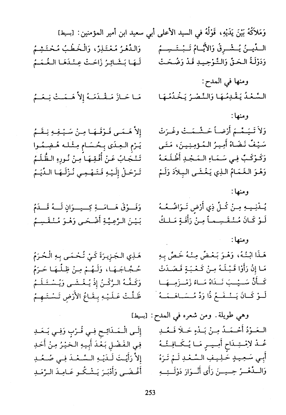 وهي طويلة. ومن شعره في المدح: [بسيط]
