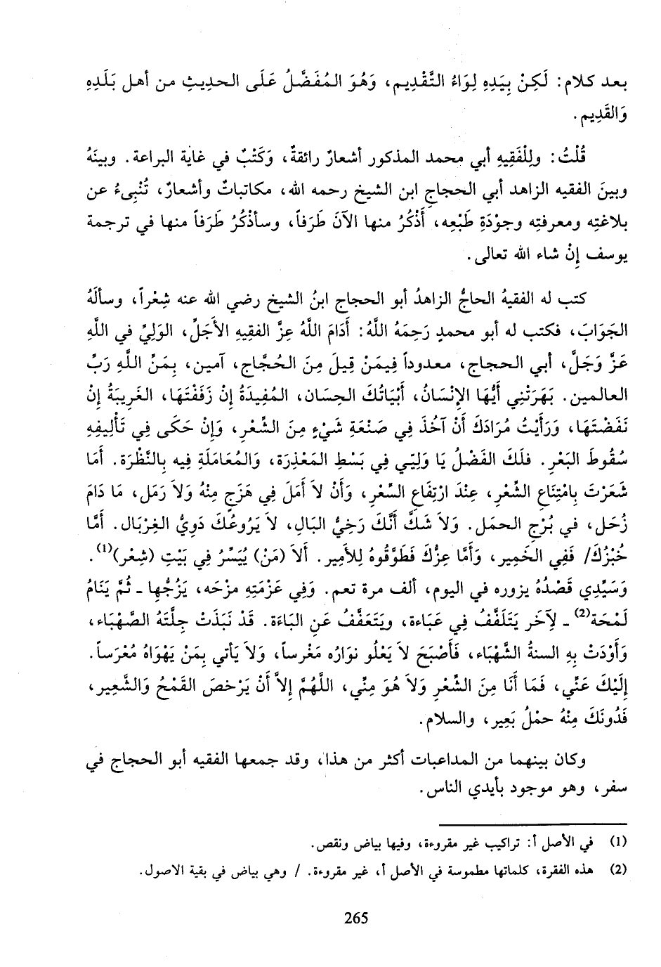 بعد كلام: لكن بيده لواء التّقديم، وهو المفضّل على الحديث من أهل بلده والقديم.