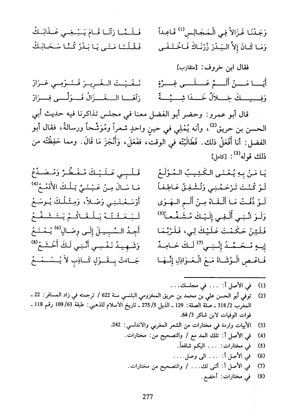 (¬2) توفي أبو الحسن علي بن محمد بن حريق المخزومي البلنسي سنة / 622 ترجمته في زاد المسافر: 22 - المغرب 318/ 2 - صلة الصلة: 129 - الذيل 275/ 5 - تاريخ الاسلام للذهبي: طبقة 109/ 63 رقم 118 - فوات الوفيات لابن شاكر 64/ 3.