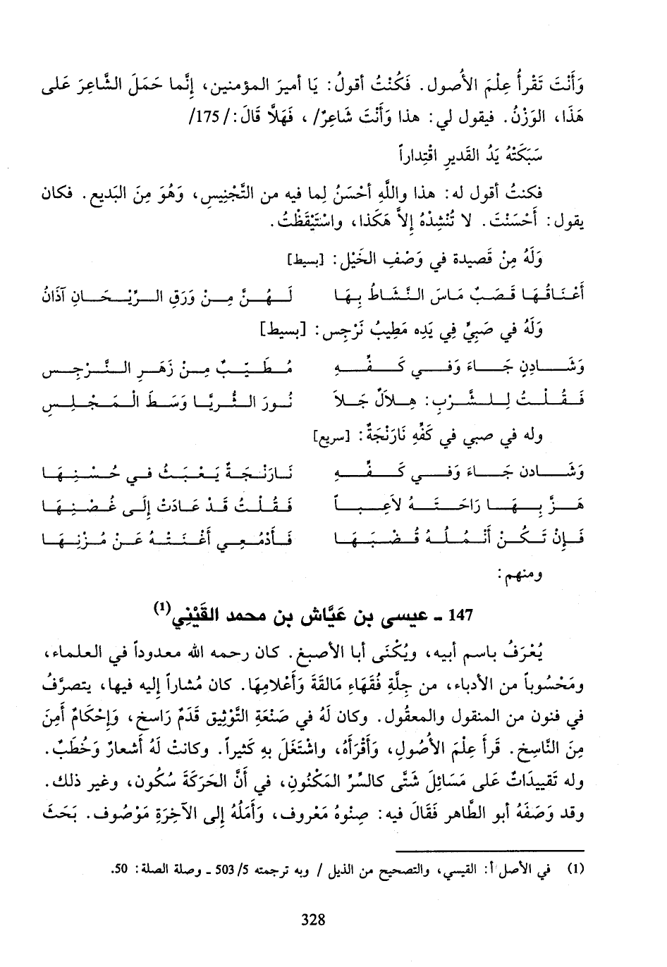 وأنت تقرأ علم الأصول. فكنت أقول: يا أمير المؤمنين، إنّما حمل الشّاعر على هذا، الوزن. فيقول لي: هذا وأنت شاعر /، فهلاّ قال: / 175 /