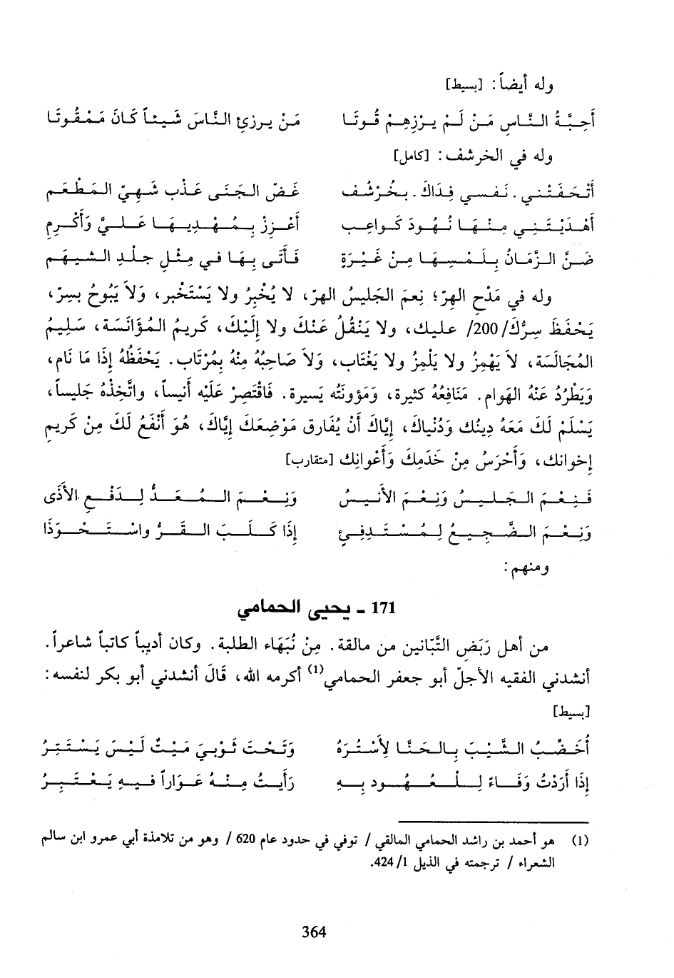 (¬1) هو أحمد بن راشد الحمامي المالقي / توفي في حدود عام / 620 وهو من تلامذة أبي عمرو ابن سالم الشعراء / ترجمته في الذيل 424/ 1.