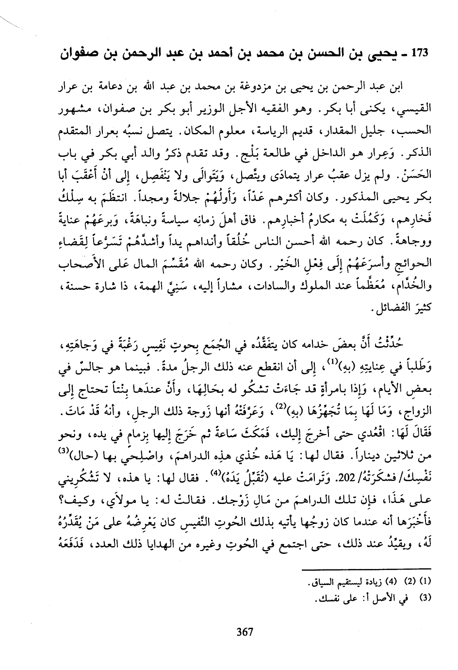 173 - يحيى بن الحسن بن محمد بن أحمد بن عبد الرحمن بن صفوان