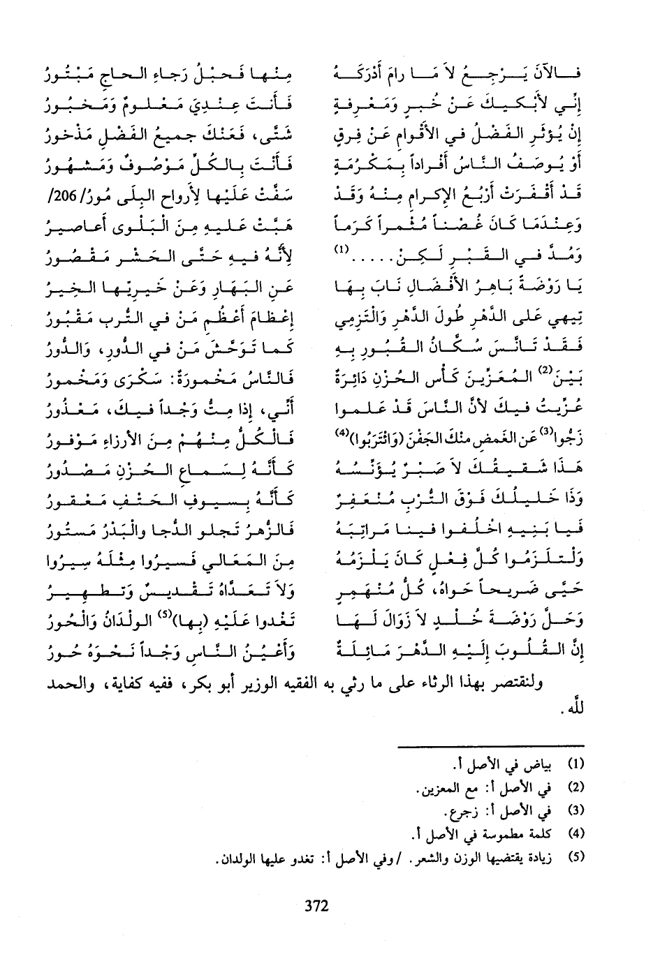 قد أقفرت أربع الإكرام منه وقد ... سفّت عليها لأرواح البلى مور / 206 /