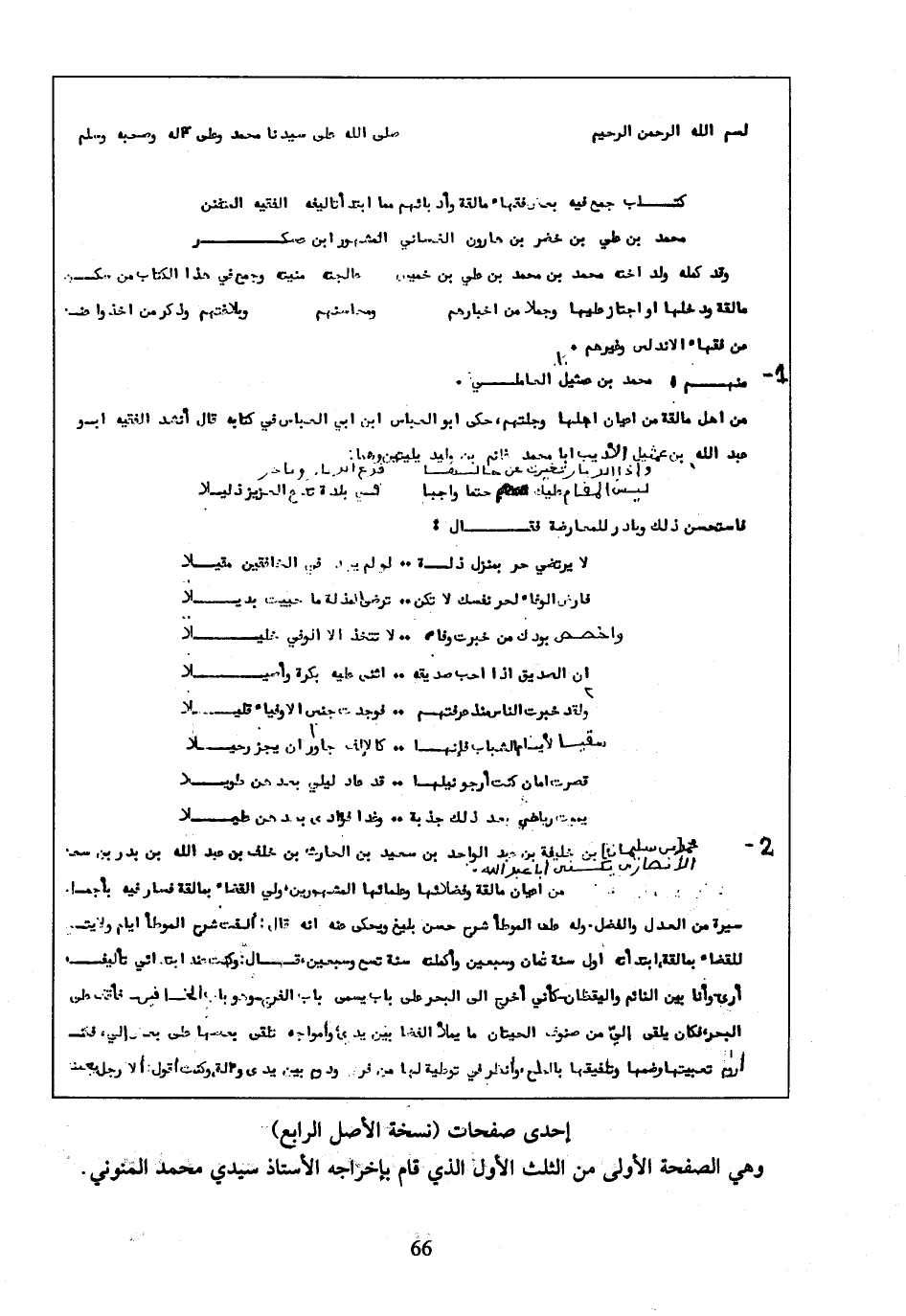 إحدى صفحات (نسخة الأصل الرابع) وهي الصفحة الأولى من الثلث الأول الذي قام بإخراجه الأستاذ سيدي محمد المنوني.