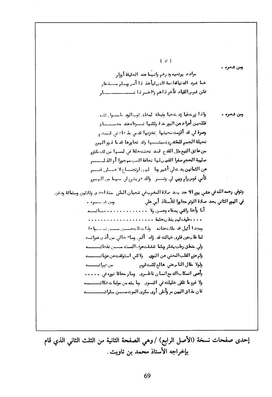 إحدى صفحات نسخة (الأصل الرابع) / وهي الصفحة الثانية من الثلث الثاني الذي قام بإخراجه الأستاذ محمد بن تاويت.