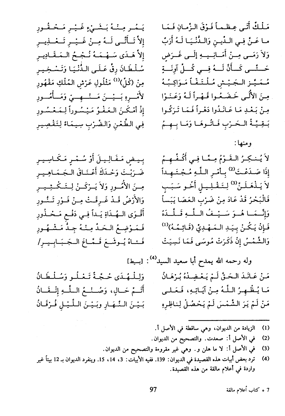 (¬4) ترد بعض أبيات هذه القصيدة في الديوان: 139.ففيه الأبيات: 3، 14، 15.وينفرد الديوان ب 12 بيتا غير واردة في أعلام مالقة من هذه القصيدة.