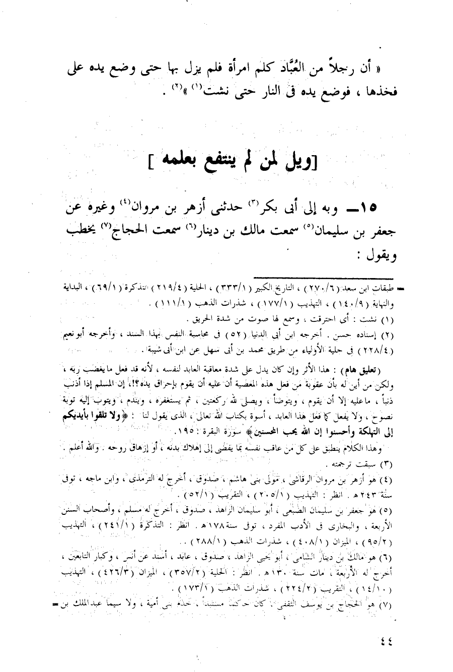 15 - وَبِهِ إِلَى أَبِي بَكْرٍ حَدَّثَنِي أَزْهَرُ بْنُ مَرْوَانَ وَغَيْرُهُ عَنْ جَعْفَرِ بْنِ سُلَيْمَانَ سَمِعْتُ مَالِكَ بْنَ دِينَارٍ سَمِعْتُ الْحَجَّاجَ يَخْطُبُ وَيَقُول